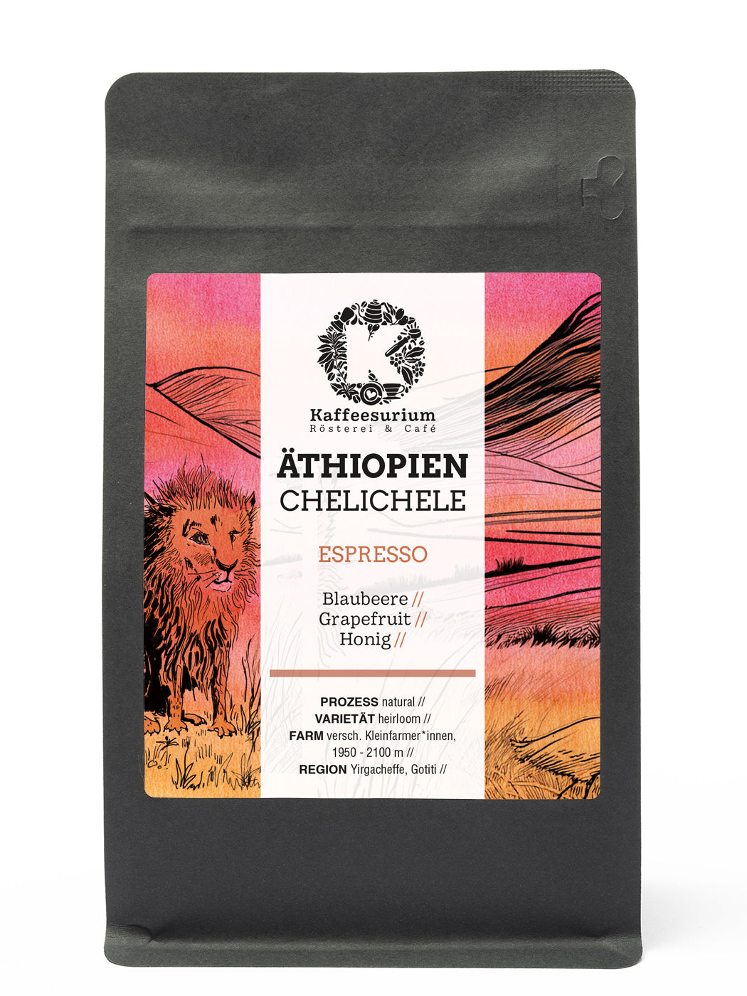 Der Exporteuer Ephtah Specialty Coffee arbeitet eng und fair mit lokalen Farmer*innen zusammen und finanziert bis zu 85 % der Ernte vor. Die Chelichele-Station von Tamiru Amare verarbeitet Kaffee von Kleinbauern mit durchschnittlich 0,5 ha Land. Aufbereitung Die Kaffeekirschen werden gewaschen, auf Quakers geprüft und anschließend 12–15 Tage auf afrikanischen Trockenbetten getrocknet.