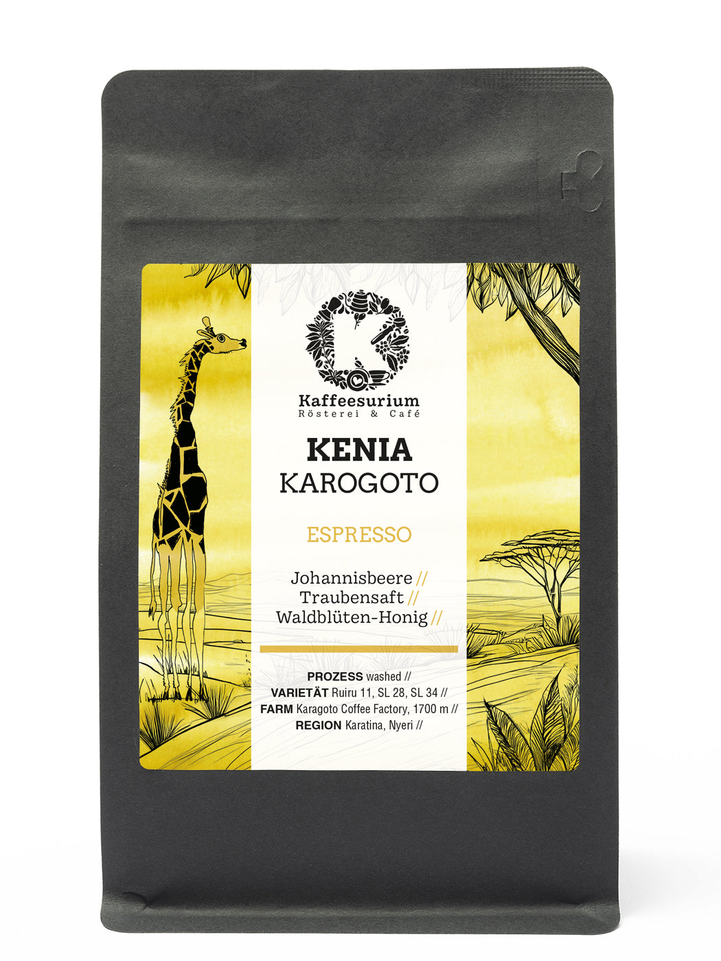 Die Karogoto Coffee Factory liegt in der berühmten Kaffee-Region Nyeri, am Fuße des Mount Kenya. Hier, auf etwa 1.700 Metern Höhe, wachsen die Varietäten SL28, SL34 und Ruiru 11 auf fruchtbaren, roten Vulkanböden. Das kühle Hochlandklima und der gleichmäßige Regen lassen die Kaffeekirschen besonders langsam reifen – das Ergebnis: außergewöhnlich dichte Bohnen mit intensiven, vielschichtigen Aromen.