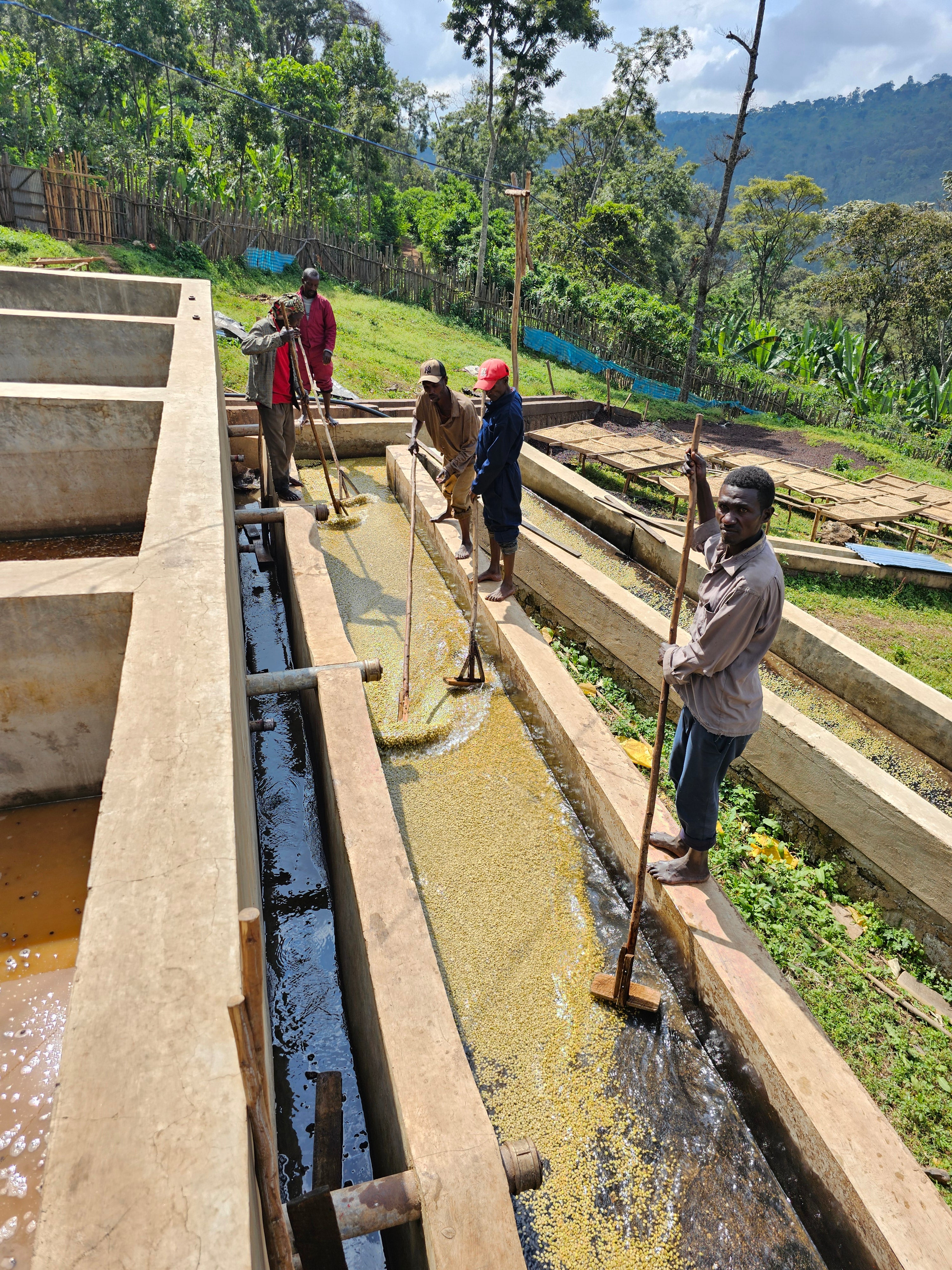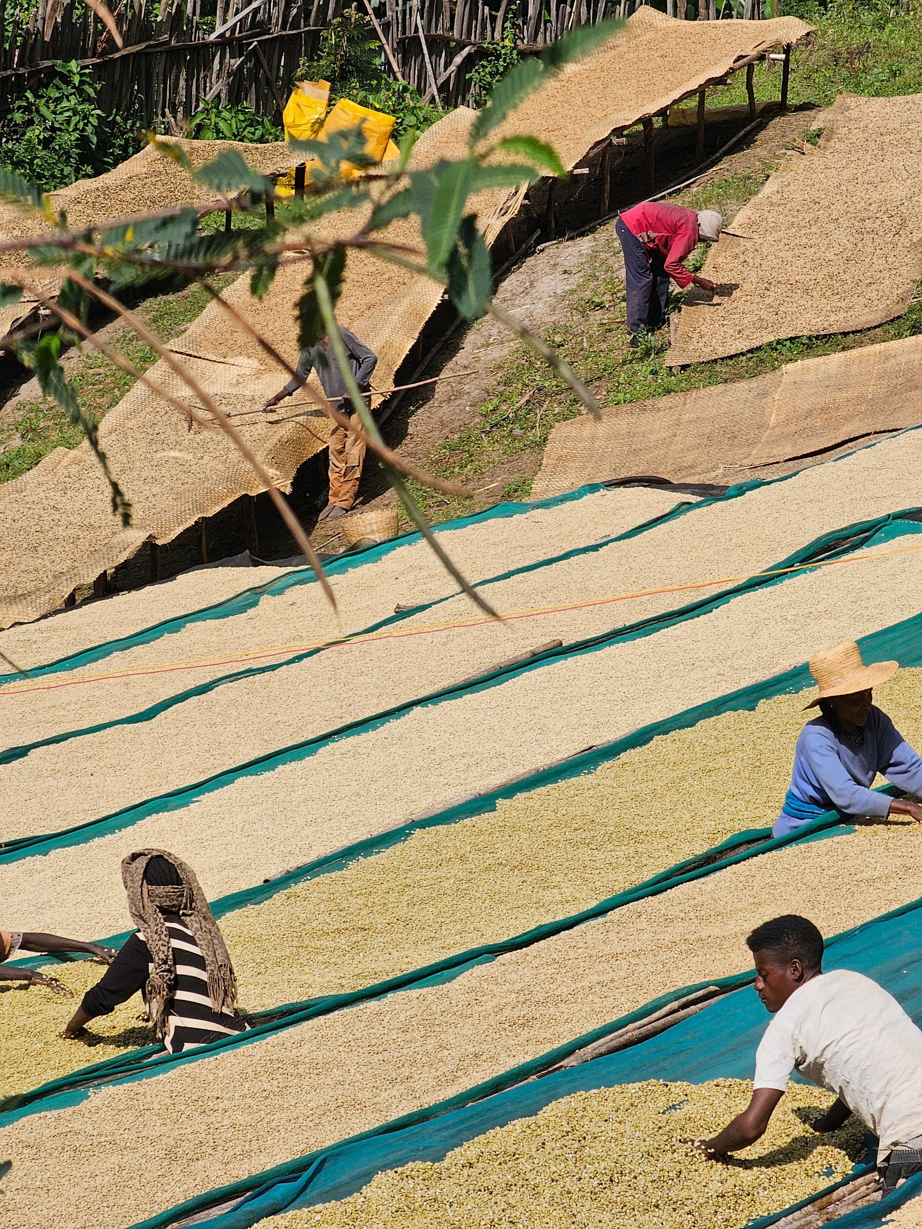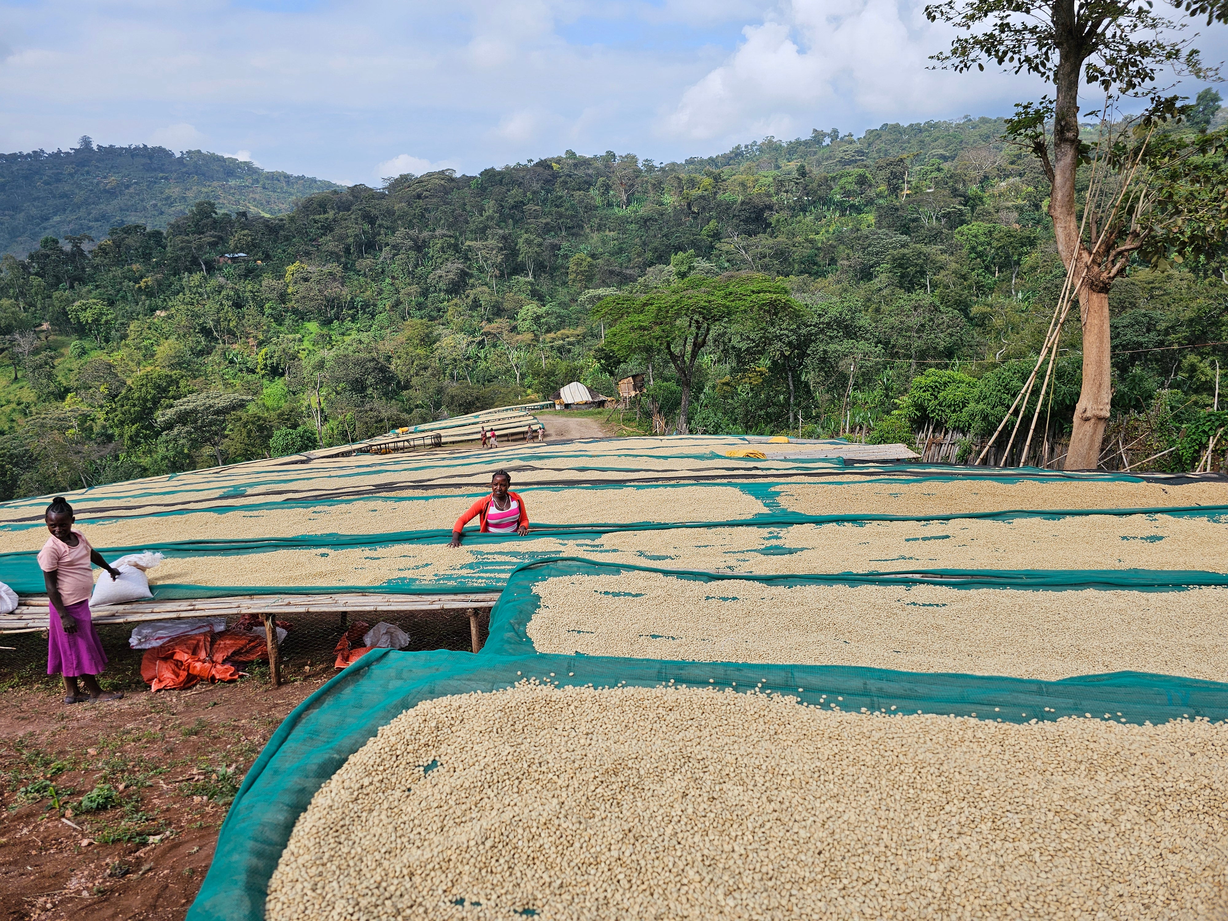 Für dieses Lot werden ausschließlich vollreife, rote Kirschen der umliegenden Farmen eingekauft und schonend vorsortiert. Nach dem Entpulpen auf einer lokalen Entpulpungs-Maschine fermentiert und wäscht Mikiyas den Kaffee und trocknet ihn anschließend auf erhöhten afrikanischen Trockenbetten. Erst nach strenger Kontrolle von Feuchtigkeit und einer finalen Defektsortierung gelangt der Kaffee ins Lager.